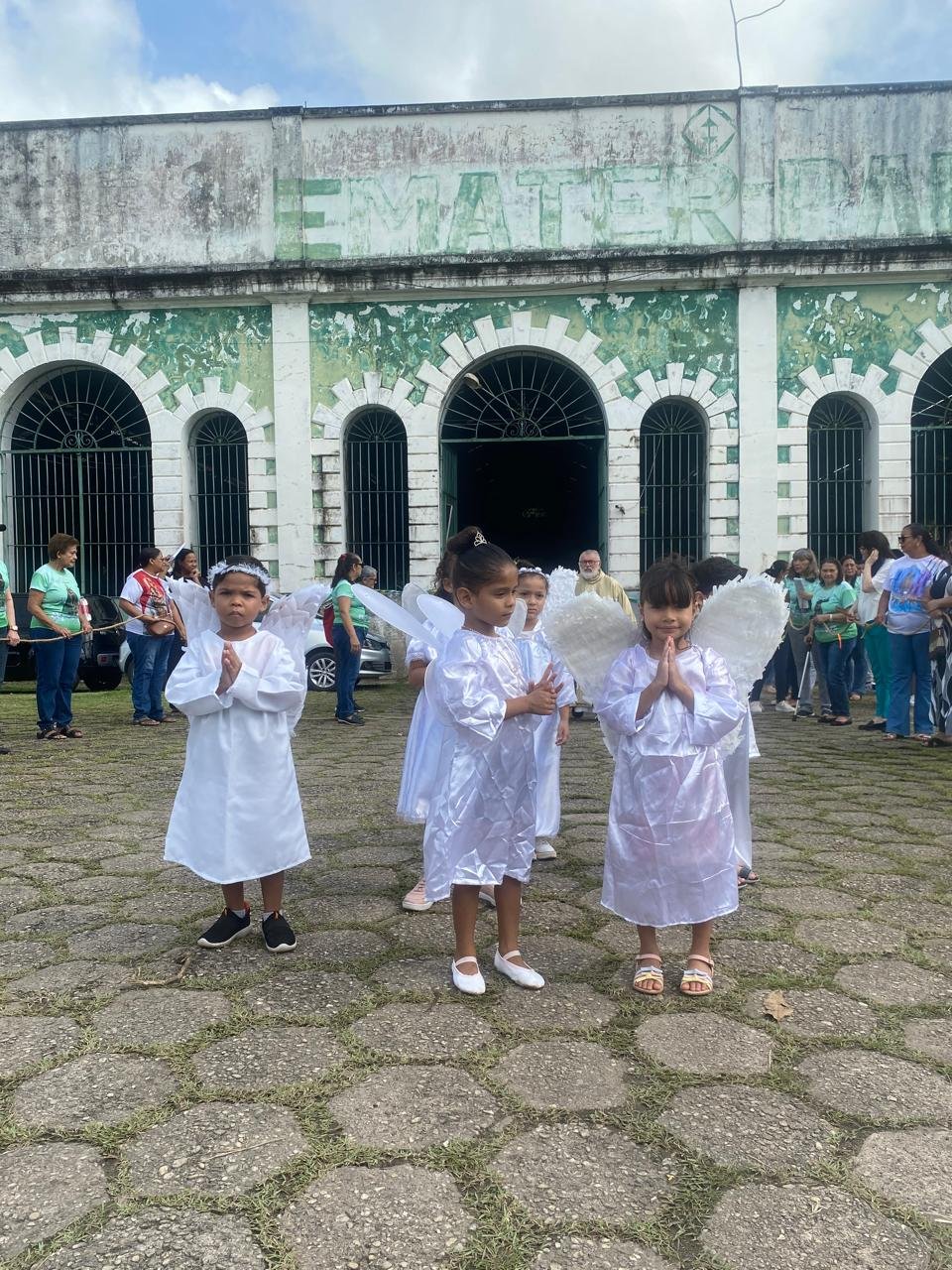 A corda de cerca de 60 metros estendeu-se pela caminhada de em torno 250m: da entrada principal do prédio até o auditório Alberto Bentes Guerreiro, onde se celebrou uma missa, pela paróquia Nossa Senhora do Amparo, do bairro Cidade Nova, em Ananindeua.