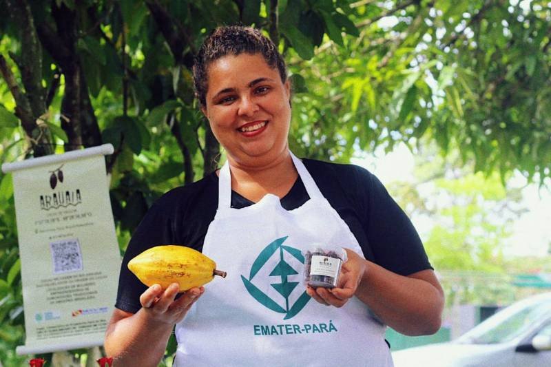 Foto: Divulgação A amêndoa caramelizada é o carro chefe das vendas da Elene Elda Oliveira Mota, de 28 anos. A amêndoa que ela utiliza no produto é oriunda do cacau nativo cultivado na propriedade da família, no município de Barcarena, no Baixo Tocantins. A Elene, o esposo e a mãe coletam os frutos, fazem o processo de retirada das amêndoas, produzem o chocolate 100% orgânico e comercializam o produto final. A família da Elene é uma das mais de 100 famílias ribeirinhas assistidas pela Empresa de Assistência Técnica e Extensão Rural do Estado do Pará (Emater), em Barcarena, que recebem incentivo a agricultura familiar, a geração de renda e a cultura do cacau com orientações que visam melhorar toda cadeia produtiva. Foto: Divulgação Do início do plantio até a comercialização do produto, a Emater está presente em todo processo. "A Emater entra desde o plantio, com a assistência técnica em orientação de espaçamento, quantidade de árvore por área, poda e adubação, boas práticas de sanitização e processo, bem como na assistência técnica de plantio, seja na emissão do Cadastro Nacional da Agricultura Familiar (Caf), ou na elaboração do Cadastro Ambiental Rural (CAR)", explica a chefe do escritório local (Esloc) da Emater, em Barcarena, Cristiane Brito. A região ribeirinha de Barcarena tem como peculiaridade o fluxo das marés, com consequente fertilização natural de seus solos. "É uma área de várzea, o local não precisa ser adubado, a adubação acontece de forma natural na entrada e saída da maré", contou. Foto: Divulgação Padronização - No caso específico da Elene, a Emater está acompanhando o processo de padronização da embalagem do produto, assim como o processo de financiamento agrícola para incrementar e auxiliar no processo da produção do chocolate da empreendedora. A Emater ainda ajuda no apoio logístico para ela poder comercializar o produto. "A Elene mora num lugar de difícil acesso, por isso nós a levamos para participar das feiras de artesanato e hortifrutigranjeiros que a Emater promove mensalmente em Belém e Região Metropolitana. As feiras funcionam como vitrine para exposição dos produtos dos agricultores e dos artesãos", explicou a chefe da Esloc de Barcarena. A Elene trabalha há mais de 10 anos com o cultivo do cacau nativo, com a produção artesanal e a comercialização do chocolate. A parceria com a Emater completou 5 anos. “É muito importante esse suporte que a Emater me dá desde o plantio até a comercialização. Melhorou muito a minha produção com as orientações recebidas e hoje também consigo vender todo os meus produtos, antes eu tinha prejuízos, agora tenho lucro de 100%", contou a produtora Elene Helda, que é conhecida como a “menina do chocolate”. Além da amêndoa caramelizada, a Elene comercializa o creme do cacau, o Cupulate, que é o doce de cupuaçu com chocolate, e as barrinhas de chocolate. A procura pelos produtos orgânicos aumenta nesta época do ano, na comemoração da Páscoa. Consumidor - Olismar Freitas, engenheiro de produção, mora em Belém e é consumidor assíduo de chocolate orgânico produzido no estado. Ele parabeniza o incentivo à produção de cacau em Barcarena. "Eu consumo com frequência chocolates orgânicos produzidos por exemplo, na Ilha do Combu e em Medicilândia, é bom ver que a produção de Barcarena está sendo valorizada", pontuou. "Sem falar no sabor, o chocolate orgânico é muito gostoso e refinado, não dá para comparar com o chocolate industrializado", destacou. Barcarena - A região ribeirinha do município de Barcarena tem como carro chefe o açaí, entretanto há também a exploração cacaueira que, junto com o pescado, formam a economia da agricultura familiar da região. O cacau originalmente nativo e comercializado verde e seco vem ganhando espaço no mercado, em Belém e municípios adjacentes a Barcarena. No município de Barcarena, a Emater tem incentivado o cultivo do cacau em consórcio com o açaí, favorecendo a sazonalidade de safras dessa região. Há uma Unidade de Referência Tecnológica (URT) do cacau com o açaí na localidade da Ilha do Arapari, projeto piloto da Emater iniciado recentemente. Destaque - O Pará é o maior produtor de cacau do Brasil. Pelo levantamento Sistemático da Produção Agrícola (LSPA) de 2022, publicado pelo Instituto Brasileiro de Geografia e Estatísticas (IBGE), o estado já responde por 50,68% da produção. O município de Medicilândia é a cidade com maior produção. Texto de Sarah Mendes /Ascom Emater Foto: Divulgação