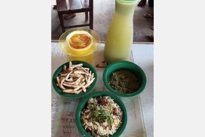 Entre as receitas ensinadas na oficina estão o Arroz Explosão - preparado com arroz, jambu, talo de couve, cariru, e casca de jerimum; o Doce da Casca do Maracujá, Creme de Talo de Jambu e Casca de Laranja Cristalizada e o Suco Nutritivo com couve, maracujá, limão e carambola.