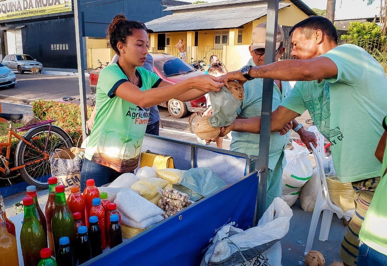 Toda primeira sexta-feira do mês, de 6h às 11h, no galpão coberto do Mercado de Frutas, no Centro, 35 famílias de sete comunidades rurais comercializam produtos como óleo de cumaru, ostras in natura, plantas medicinais e caldo-de-cana, a preços cerca de 30% mais baratos, por exemplo, do que em lojas e supermercados da região, conforme pesquisas periódicas de mercado.
