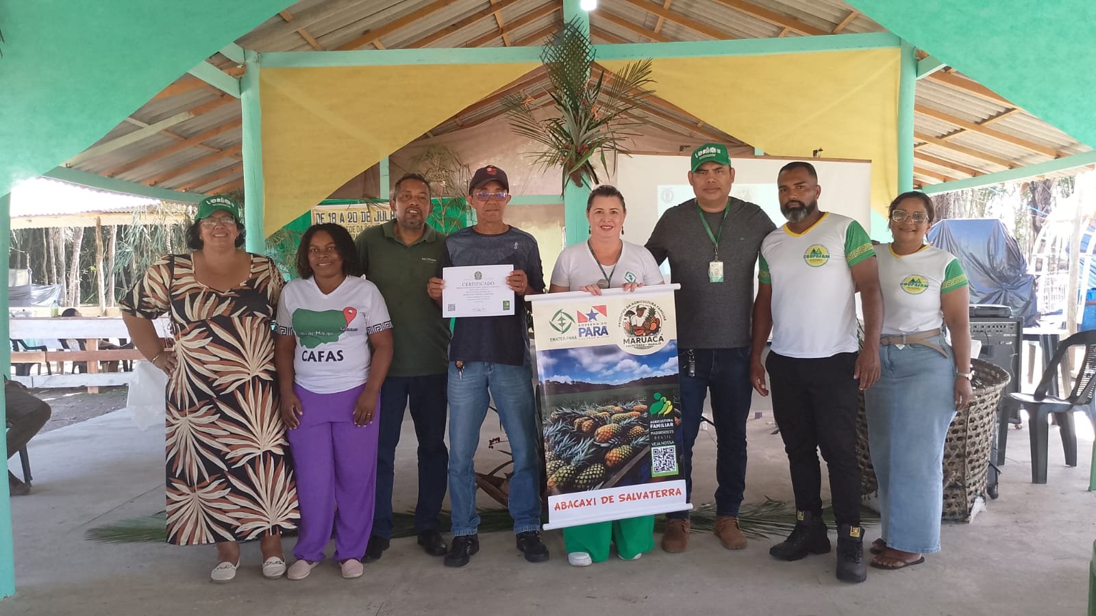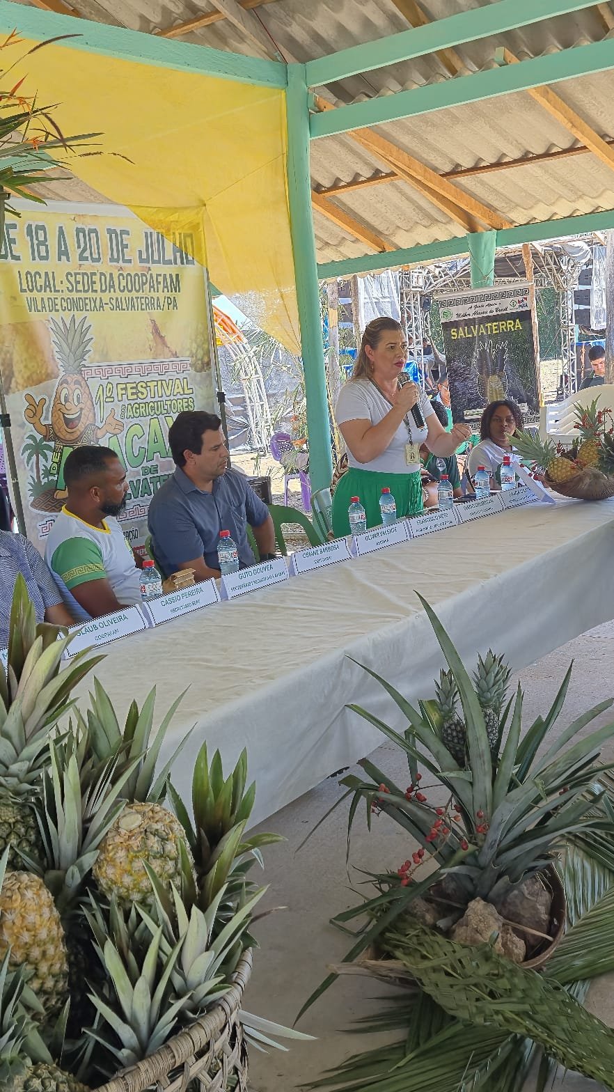 O verão 2025 de Salvaterra, no Marajó, tem gosto de abacaxi: organizado pelo escritório local da Empresa de Assistência Técnica e Extensão Rural do Estado do Pará (Emater) em parceria com a Cooperativa de Agricultura Familiar do Marajó (Coopafam) e diversas entidades, o Iº Festival dos Agricultores de Abacaxi da Coopafam reuniu cerca de 250 plantadores do fruto, de sexta-feira (18) até domingo (20), na sede da Cooperativa, na Vila de Condeixa, no Km 4 da rodovia PA-152. Outros dois grupos de agricultores, a Cooperativa dos Agricultores e Agricultoras Familiares de Salvaterra (Cafas) e a Cooperativa Agropecuária e Pesca Artesanal de Monsaras (Coopapam), apoiaram o evento.