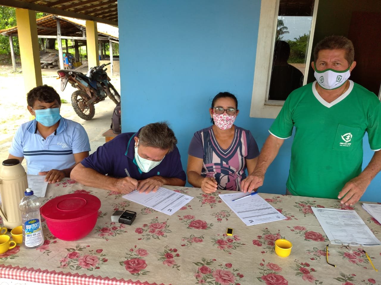 Todos os produtores integram a Cooperativa de Produção e Comercialização dos Agricultores Familiares -COOPROCOFAM, que reúne 63 cooperados de projetos de assentamentos e outras propriedades rurais localizadas nos municípios de Mãe do Rio e Capitão Poço. Além das DAPs individuais foi feita a renovação da DAP Jurídica da cooperativa, criada em 2018, e que, desde então, fornece alimentos provenientes da agricultura familiar por meio dos programas de Aquisição de Alimentos ( PAA) e Nacional da Alimentação Escolar ( PNAE).