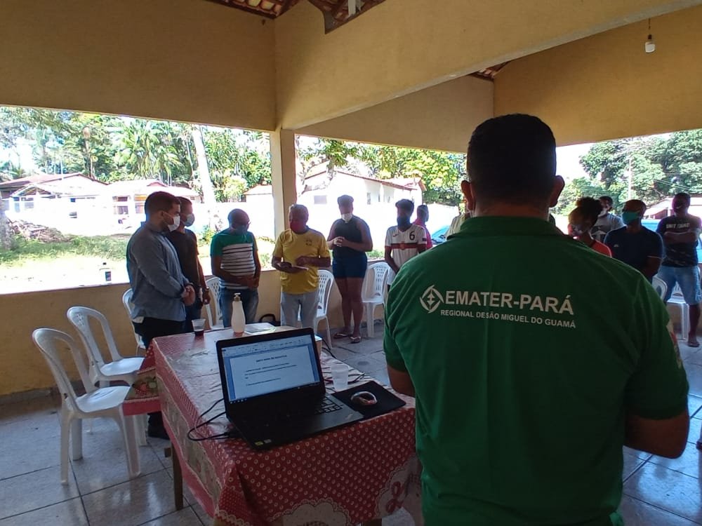 Agricultores familiares da comunidade quilombola Santa Maria do Muraiteua se reuniram na terça-feira (29) com técnicos do escritório local da Empresa de Assistência Técnica e Extensão Rural do Pará (Emater) em São Miguel do Guamá, município da região Nordeste, e servidores da Procuradoria do Município, para tratar sobre a criação da associação quilombola. A entidade visa contribuir para o autorreconhecimento quilombola e a regularização ambiental e fundiária da comunidade, informou o chefe do escritório local, Odiwaldo Portela da Silva.