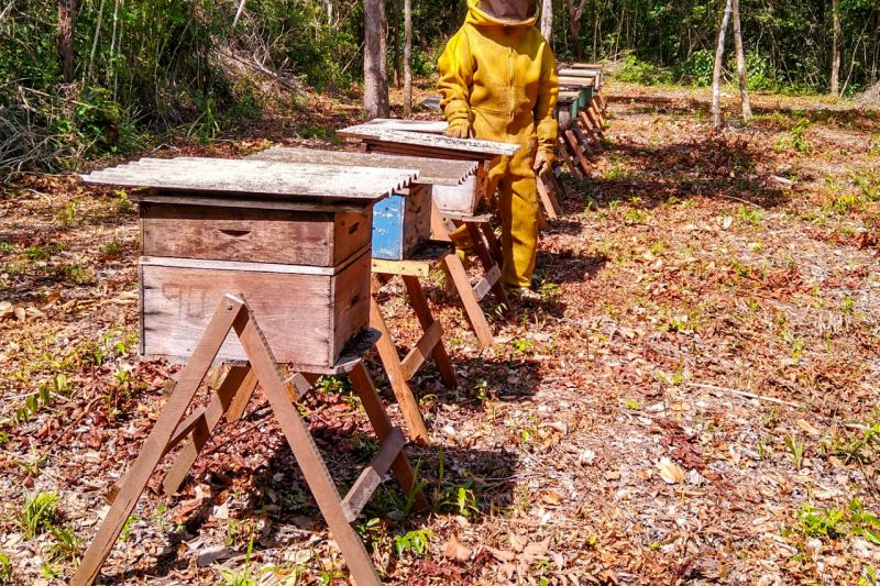 Produtividade - Um dos protagonistas do sucesso da Emater de Alenquer com crédito em 2023 foi João Batista Filho, de 40 anos, que possui mais de 300 colméias de abelhas-com-ferrão na Fazenda Juquiá, situada na comunidade Bom Princípio, no km 40 da rodovia PA-245, sentido-Óbidos. Nos 31 hectares, há também banana, cupuaçu, limão e laranja.