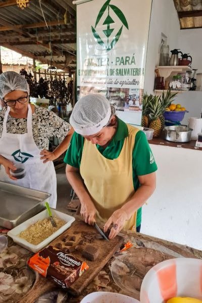 “Aprendemos a fazer pizza, vatapá e pão de macaxeira, uma delícia e muito saudável. Já aprendemos a fazer cocada, bolo, pudim, trufas, licor de açaí, de cupuaçu, de manga, que vendemos bastante. A gente como produtor, são coisas que temos aqui na nossa região, que nós mesmos plantamos. Trabalhamos com métodos de higiene pra fazer tudo direitinho. Coisas que a gente não sabia fazer nada. Agora eu posso dizer que a gente aprendeu. É uma forma de ganhar dinheiro, uma renda a mais para as famílias”, compartilha a agricultora.