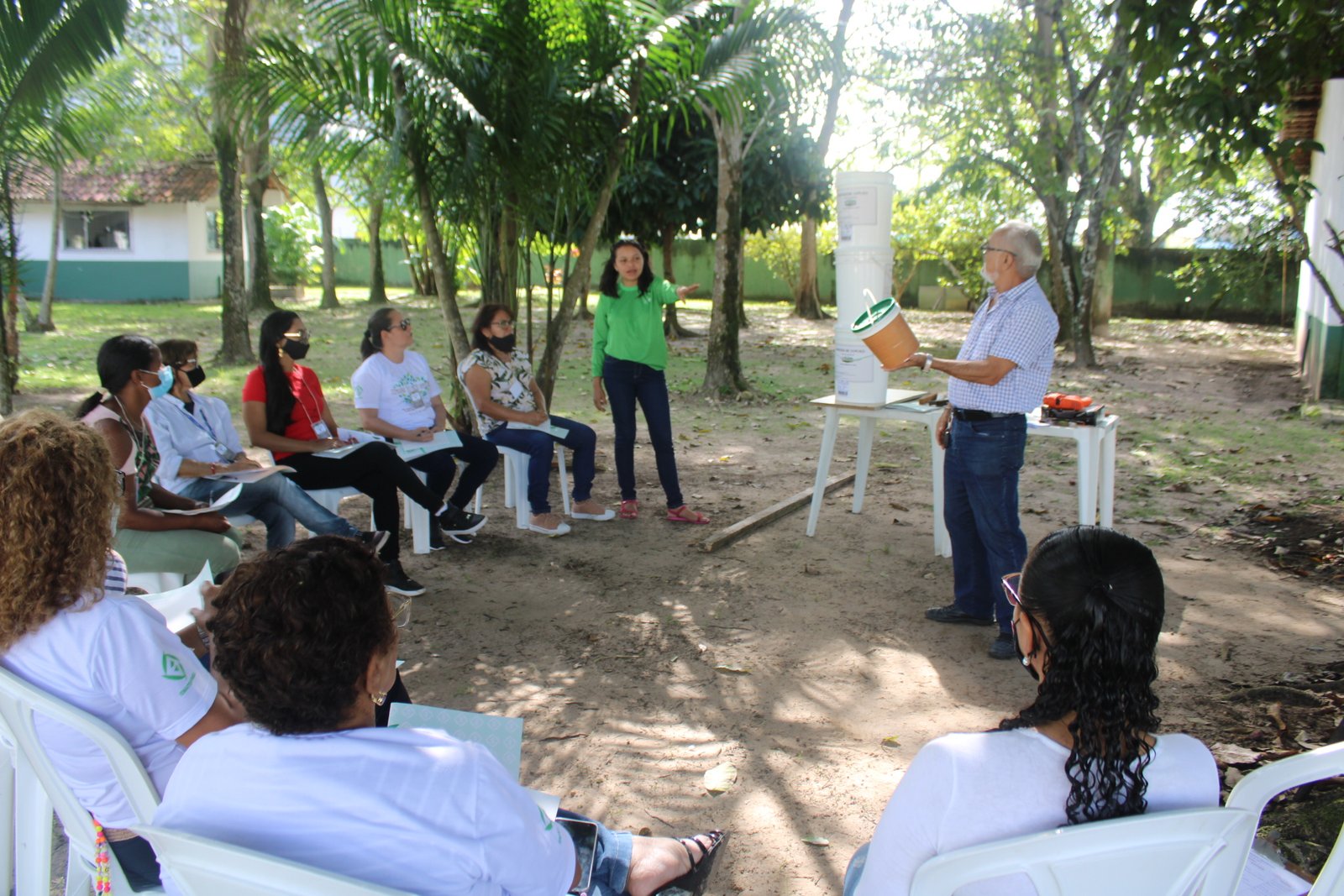 Na manhã desta quinta-feira (9), a Emater promoveu no escritório central em Marituba, na Região Metropolitana de Belém (RMB), uma capacitação para a confecção de composteira doméstica, alternativa fácil e barata de reciclar lixo orgânico dentro de casa.