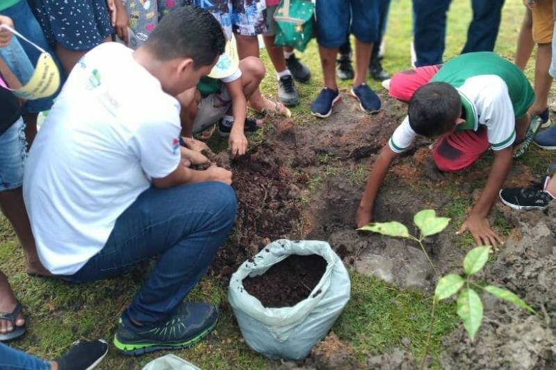 Em Bagre, no Arquipélago do Marajó, sob o sol ameno de 8h na Praça do Paraíso, Maria Clara Melo, de 10 anos, antecipou-se e se ofereceu para ensinar a equipe da Emater e o colegas da Escola Municipal Inês Maia (E.M.I.M) sobre ipê: “Agora a gente coloca água, gente”, detalhava.