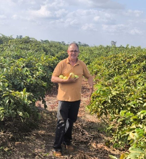 Oliveira vive com a esposa, Marilene Oliveira, de 70 anos, na Colônia Paraíso, no Km 06 da rodovia BR-222. A família trabalha com mil pés de goiaba em quase quatro hectares dentro do Sítio Manaím.