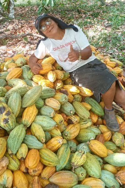 O endereço na Vicinal Castanheira, um ramal da PA-279, é de onde se colhem 15 toneladas de cacau por ano, exportadas para a Bahia por meio de uma cooperativa.