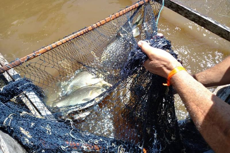 À frente do Sítio Novo Progresso, 300 hectares ribeirinhos, ele compartilha a vizinhança com os irmãos e primos, todos nas linhas de sucessão da agricultura familiar. Entre terra de floresta e campo nativo, a propriedade sedia 24 tanques-escavados com tambaqui e tambatinga: 20 tanques de engorda e quatro de berçário. Além, a família mexe com açaí e gado misto.