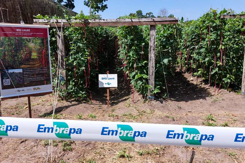 Metro - A Emater e a Embrapa estão analisando as possibilidades da produção de feijão de metro. “Além da apresentação das novas cultivares, estamos expondo aqui ainda, em caráter de apresentação e não de lançamento, de dois materiais de feijão de metro que podem ser trabalhados em conjunto com a Emater num futuro próximo. A partir de um instrumento jurídico, devemos trabalhar nos próximos meses essa tecnologia, para que a Emater possa multiplicar esse material e fornecer para os agricultores familiares que são o principal foco de produção desses materiais”, contou Bruno Giovany de Maria, chefe adjunto de Transferência de Tecnologia, da Embrapa Amazônia Oriental.