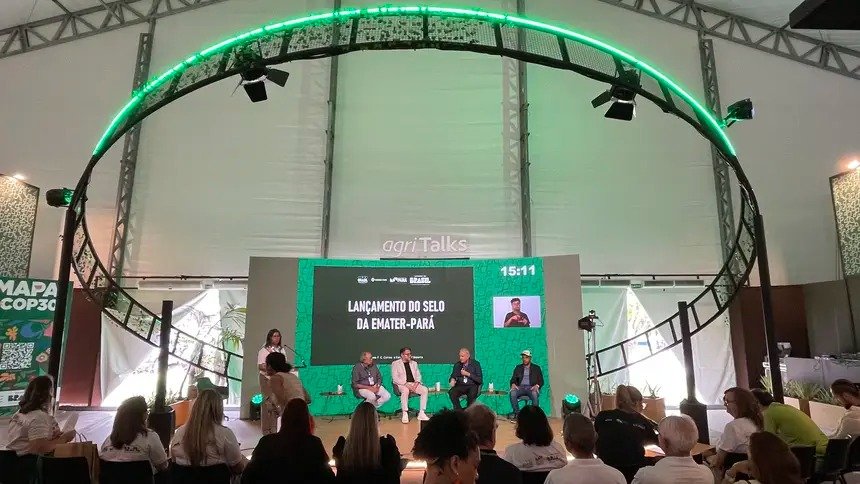 O Governo do Pará, por meio da Empresa de Assistência Técnica e Extensão Rural do Estado do Pará (Emater-Pará), lançou o Selo Emater Pará, na manhã desta sexta-feira (21), na Agri Zone (Arena Agri Talks), na Embrapa, durante a programação da COP 30 (30ª Conferência Mundial sobre Mudanças Climáticas), em Belém.