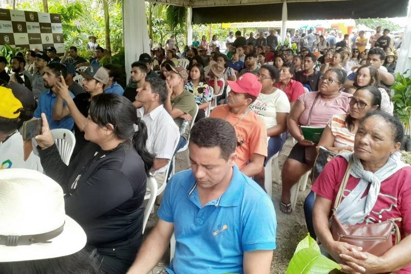 Cerca de 200 agricultores familiares participaram da palestra com o tema "Cadastro da Agricultura Familiar (CAF) e o Crédito Rural na Agricultura Familiar" promovida no dia 1º de julho pela Empresa de Assistência Técnica e Extensão Rural do Pará (Emater), no 1º Festival de Cacau de Paragominas, evento realizado pela prefeitura municipal.