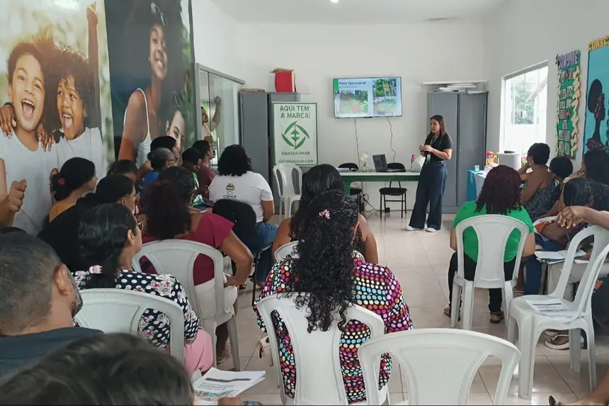 A oficina foi ministrada pela tecnóloga de Alimentos, Micheli Sandrine, do Escritório Local da Emater de Paragominas, que compartilhou conhecimentos técnicos e experiências práticas na área de beneficiamento e comercialização de produtos da agricultura familiar.