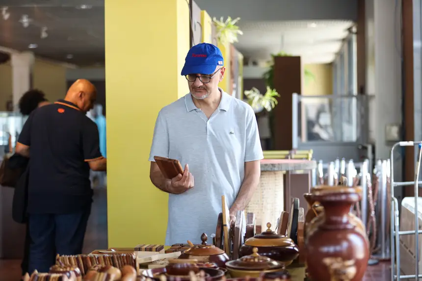 O artesão de miriti Manoel Miranda, morador de Abaetetuba, expõe suas peças no espaço há 15 anos e destaca o impacto do apoio recebido. “Há quase 50 anos trabalho com esse tipo de artesanato e já são 15 anos no espaço. Temos muito apoio e só podemos agradecer por isso. Expor nesse espaço ajuda a gente a manter a nossa família, vendendo os nossos produtos e mostrando a nossa cultura”, afirma.